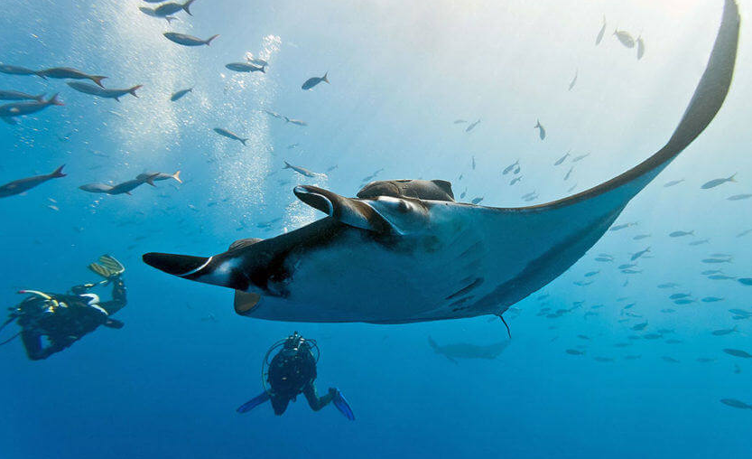 ここでは壮大なスキューバダイビングが楽しめ、マンタやジンベエザメに出会えるチャンスが非常に高いのが最大の魅力。 ただし、水深が深く潮流も強いため、中〜上級者向け(最低20本以上の経験)とされています。