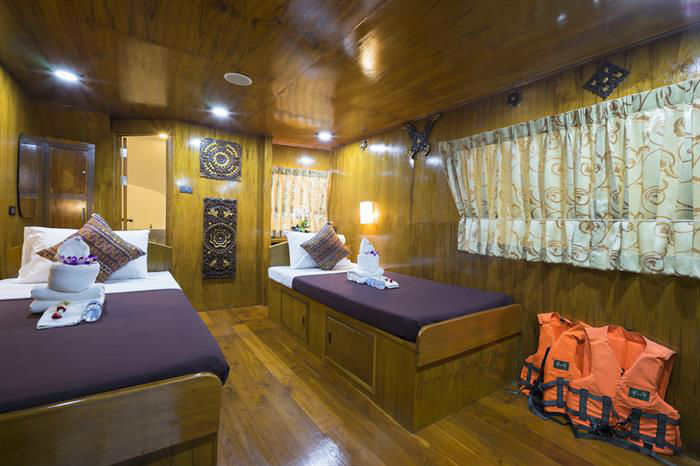 MVサワディーファーサイ号は、最大30名のゲストに対応可能な全15室のエアコン付きキャビンを備えています。
